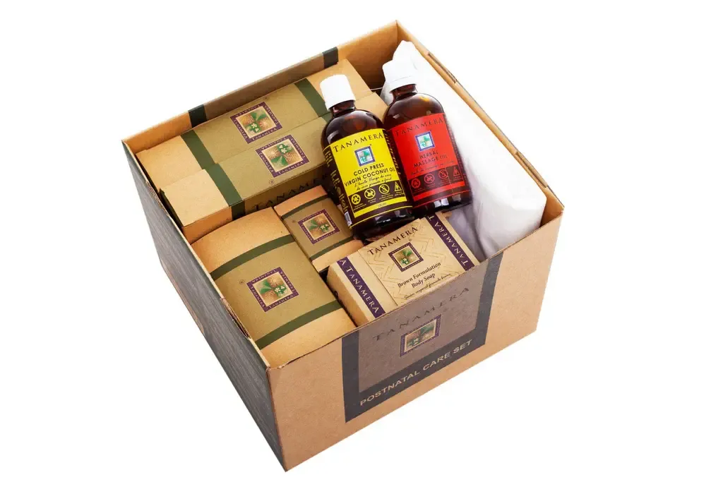 The Tanamera 10-in-1 Postnatal Complete Set is a comprehensive gift set designed specifically for new mothers. It includes everything needed for postnatal care, from herbal compresses to body oils, ensuring that mom gets the best care and recovery after childbirth.