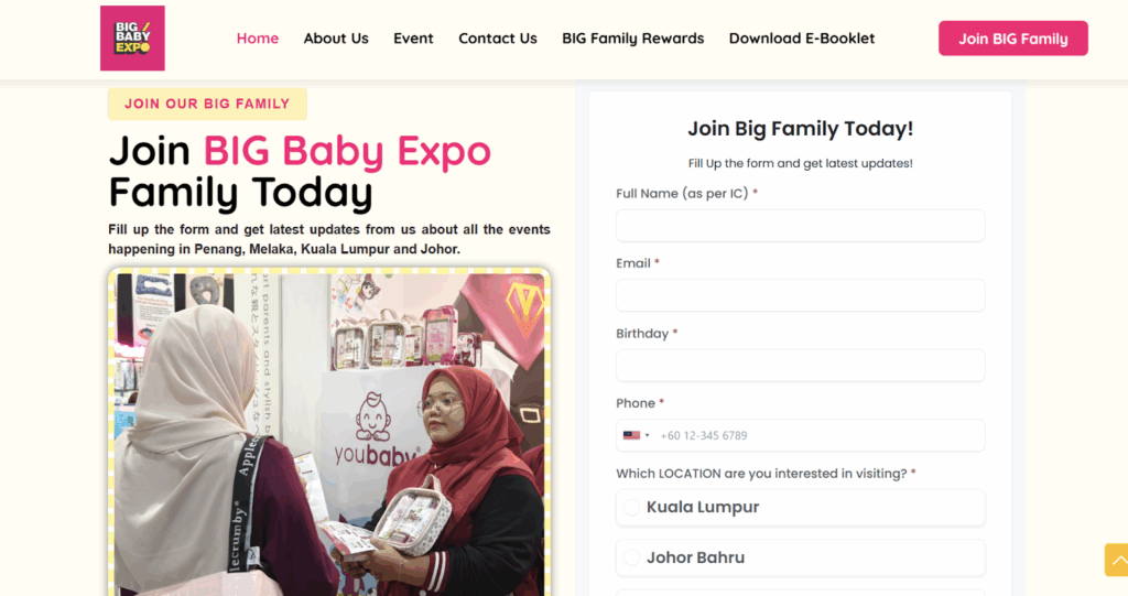 Head over to the official BIG Baby Expo registration page to start your pre-registration process.