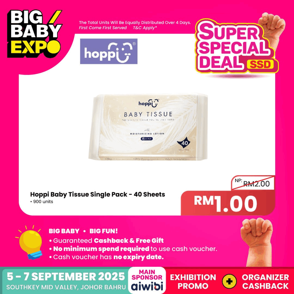 Hoppi Baby Tissue (40 Sheets)RM1.00 (Original Price: RM2.00)